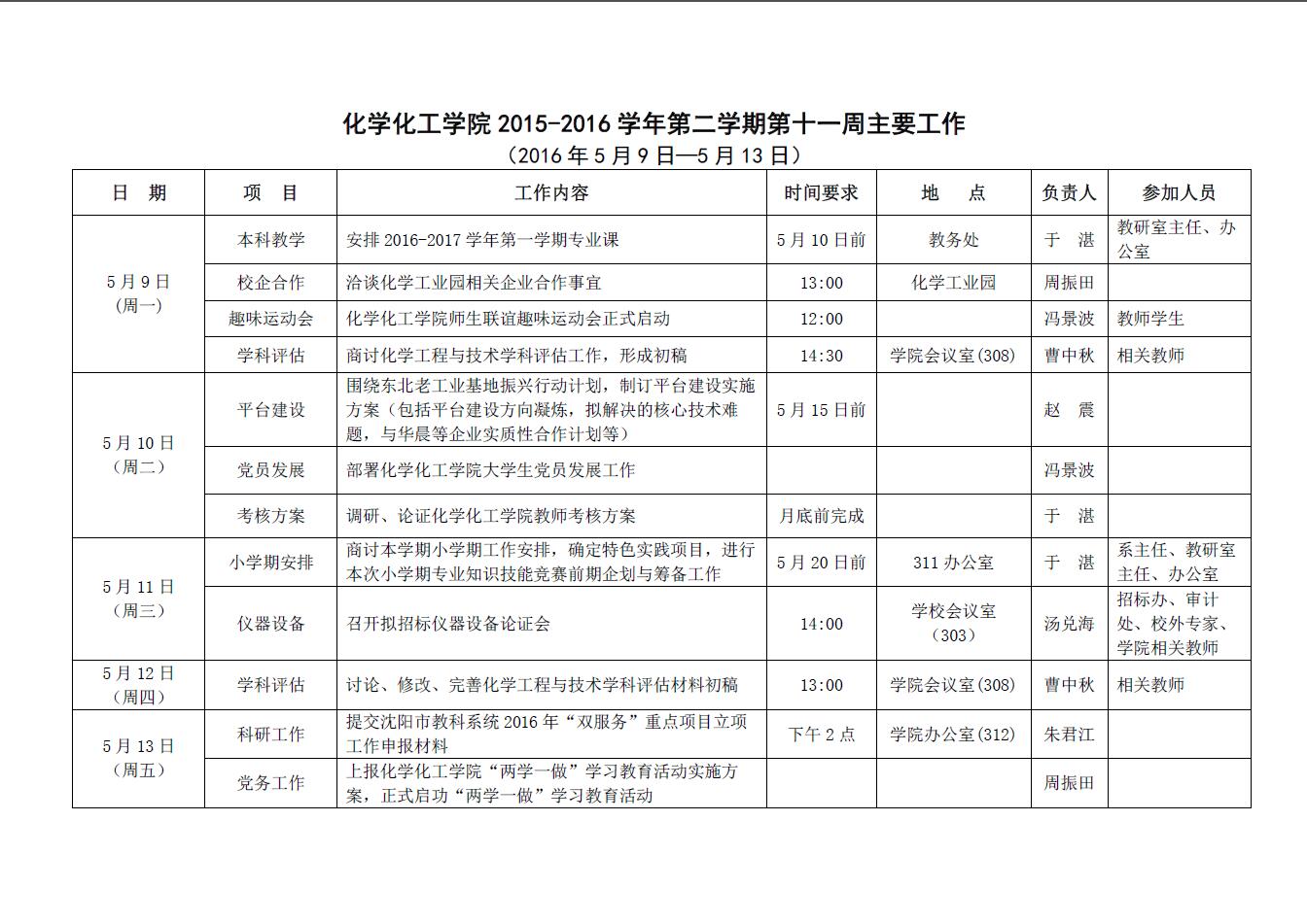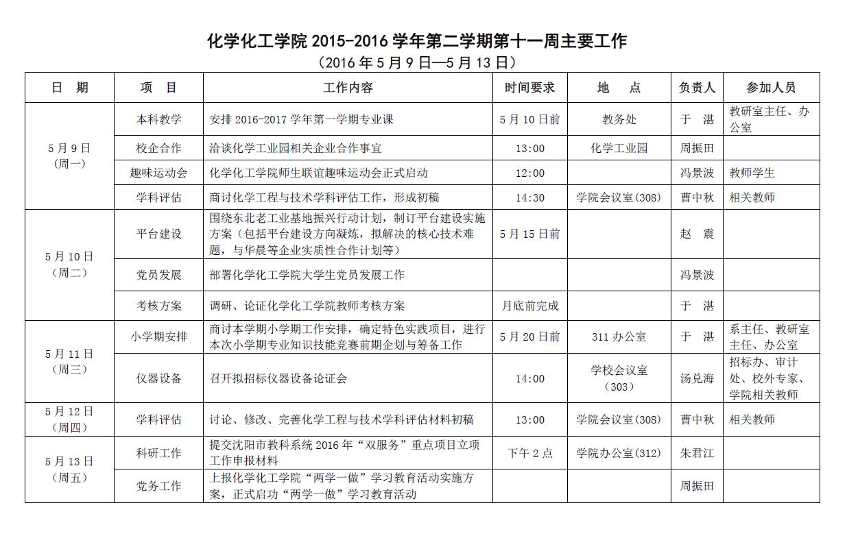 2026世界杯官网2015-2016学年第二学期第十一周主要工作