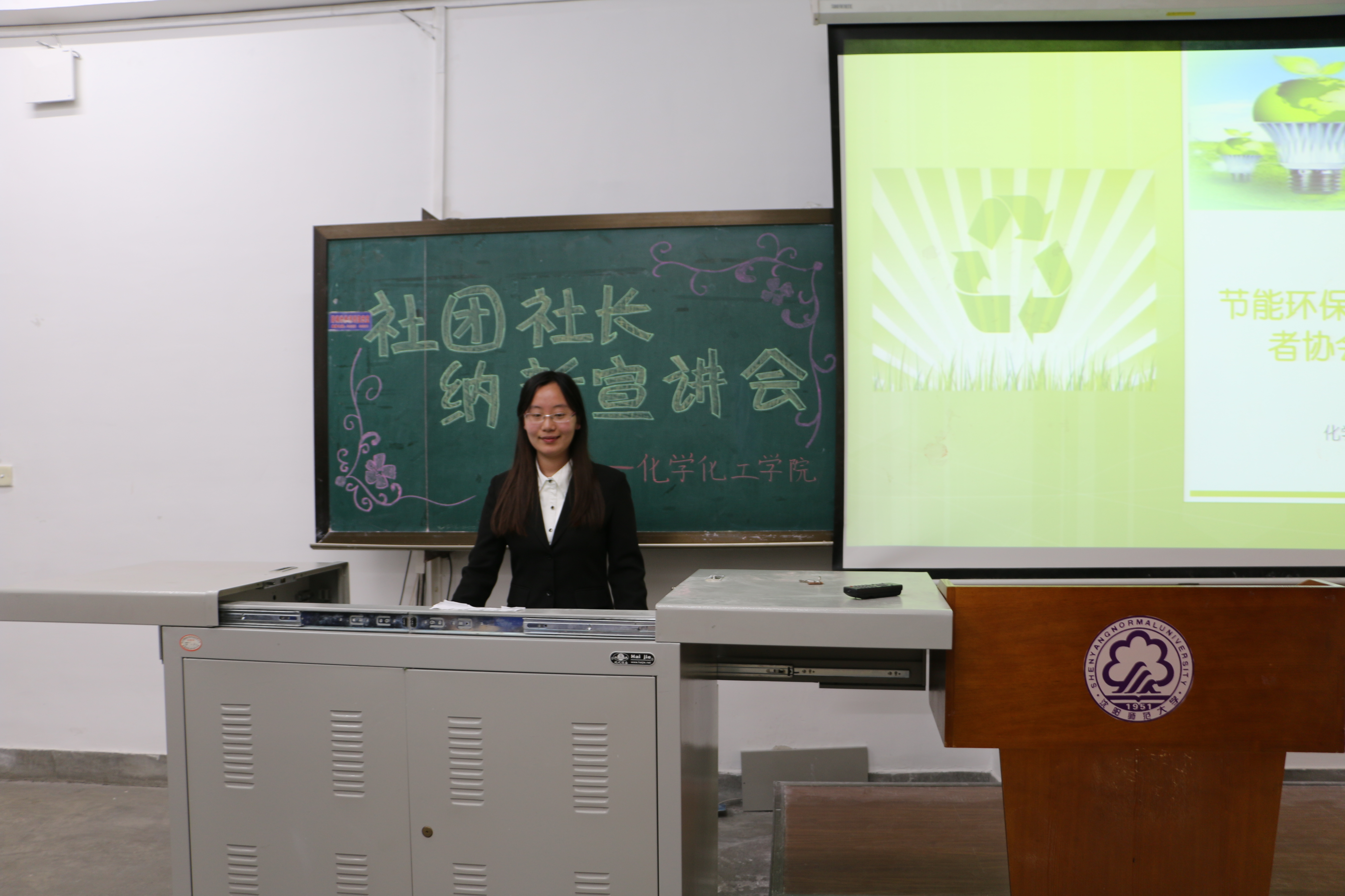 志愿者工作部副部长郑一斐从各个方面对节能环保志愿者协会展开了详细的描述。她提出了“奉献、友爱、协助、创新”的志愿服务理念,并积极宣传再利用、循环、反思意识。在宣讲会的最后,社团志愿联合中心主任贾文婷做了总结性发言,鼓励同学们积极踊跃报名。