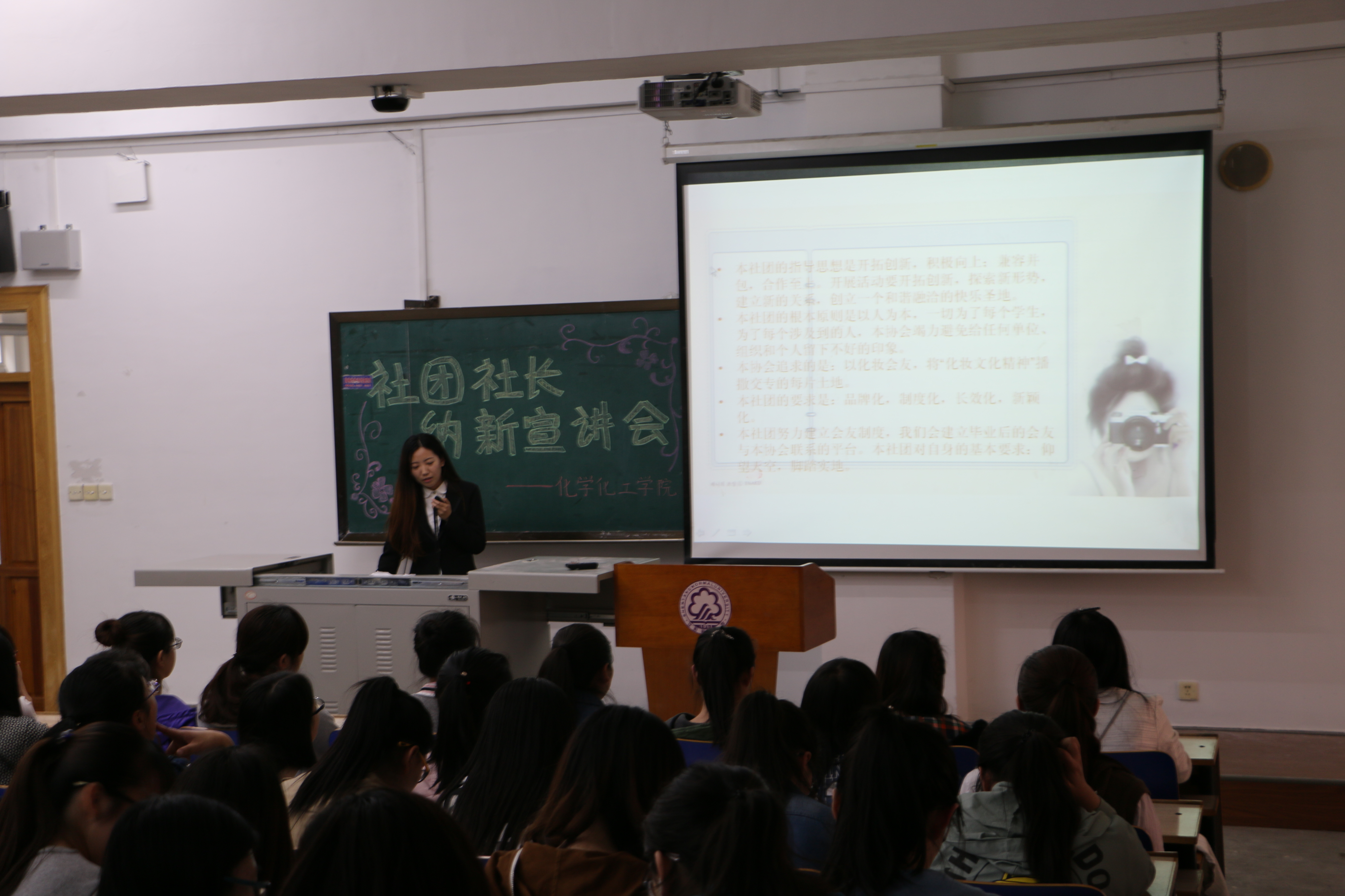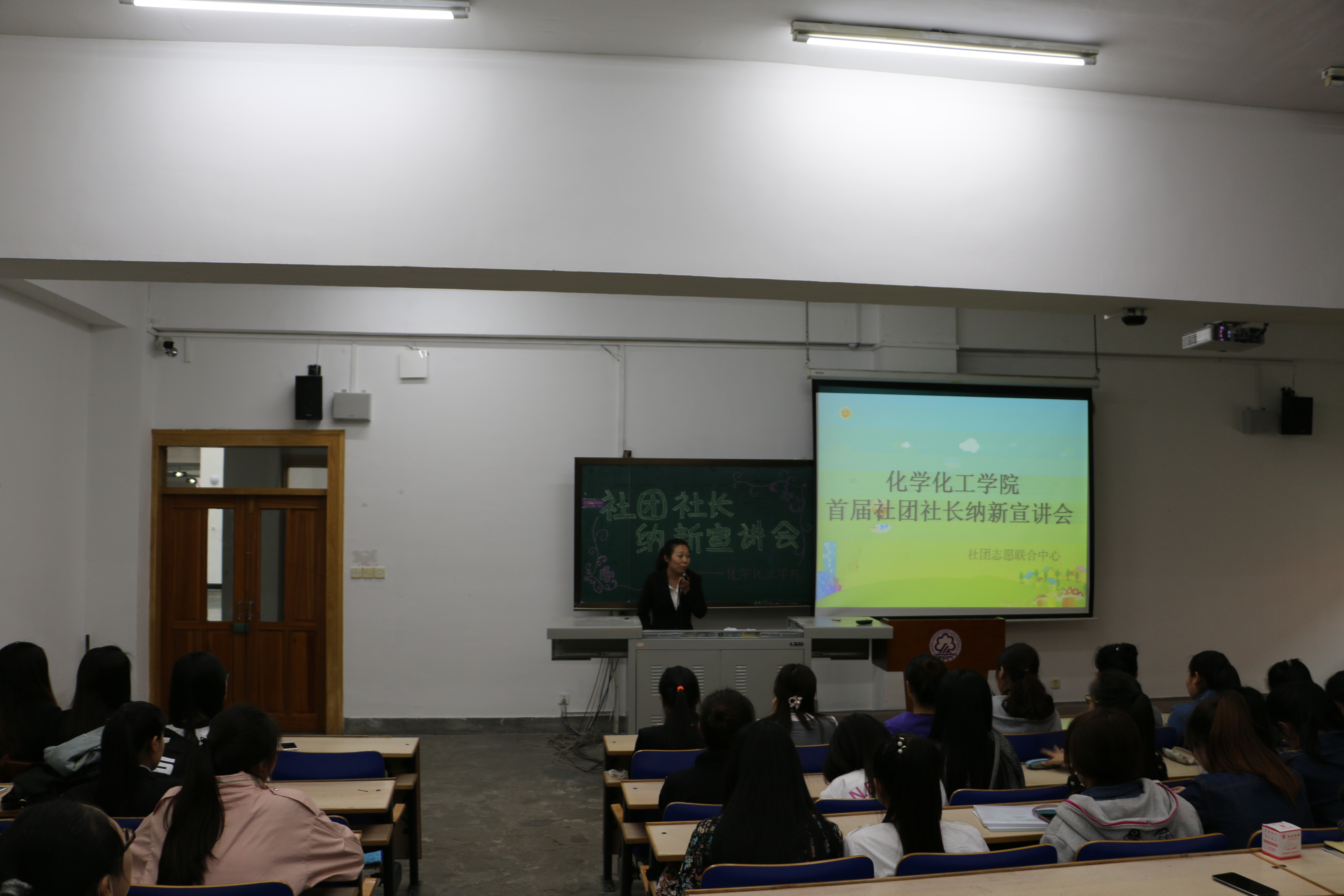 社团志愿联合中心中心主任贾文婷同学主持宣讲会