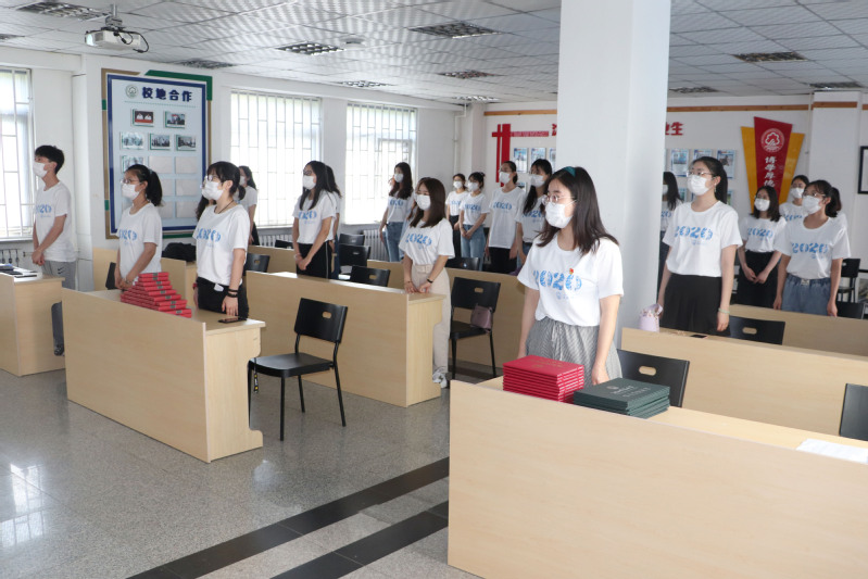 活动由副书记赵广红老师主持,有序组织毕业生们观看时代广场主会场的毕业典礼直播活动。活动第一项,奏唱国歌。全体老师、员工起立,齐唱国歌,气氛庄严肃穆。紧接着,同学们兴致勃勃地观看了校领导宣读各项表彰决定、为优秀毕业生颁奖、学位授予仪式等直播活动。会议期间,分会场不时爆发出阵阵掌声,会场毕业生们为公司研究生中考博的同学点赞,为我院本科员工的考研率点赞,被毕业生代表和职工代表的真情发言所感染,被郝董事长的讲话、嘱托和祝福深深感动。分会场直播活动后,由公司党总支班福志书记致辞。班福志书记首先为所有同学在此次疫情期间能够积极配合学院、老师的疫情防控工作点赞、为公司本次毕业生们的优秀考研率、就业率点赞,其次从班书记的声声祝福与教诲中,毕业生们能够感受到学院全体领导、老师对于大家的关心与祝福,最后,班福志书记表达了对本届毕业生美好未来的的祝愿,希望各位毕业生能谨记母校校训,谨遵师长教诲,用自己的青春和热血,继续谱写人生华美篇章。最后,学院为在场毕业生每人准备了一份礼物——公司精心制作的签字笔,上面印有学院院徽和“化院因你更精彩”的字样,寓意2020届毕业生书写了精彩的大学生活,并即将开启更加精彩的人生。典礼结束后,毕业生同学分批次、安全有序、保持距离地在分会场屏幕前逐一合影留念。至此,2020届员工毕业典礼-2026世界杯官网分会场收看直播活动圆满结束。