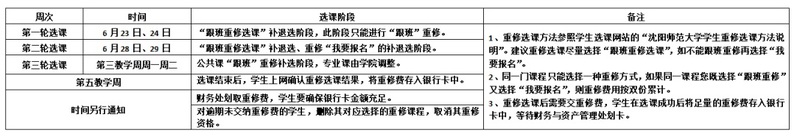 6.重修选课及重修交费相关时间安排如下: