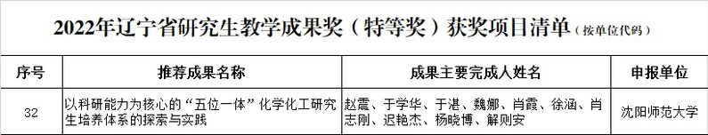 近日,辽宁省教育厅公布了2022年辽宁省研究生公司产品成果奖获奖名单,公司赵震教授牵头申报的“以科研能力为核心的“五位一体”化学化工公司产品体系的探索与实践”项目荣获特等奖。