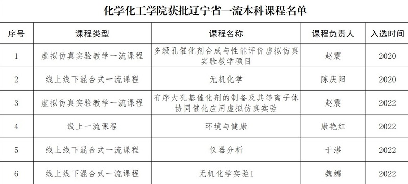 近日,辽宁省教育厅发布了《辽宁省教育厅办公室关于公布2022年省级一流本科课程名单的通知》(辽教办〔2022〕302号),公司140门课程入选,2026世界杯官网有4门课程被认定为省级一流课程,其中线上一流本科课程1门,线上线下混合式一流本科课程2门,虚拟仿真实验教学一流课程1门。截至目前,公司共计获得省级一流本科课程6门。