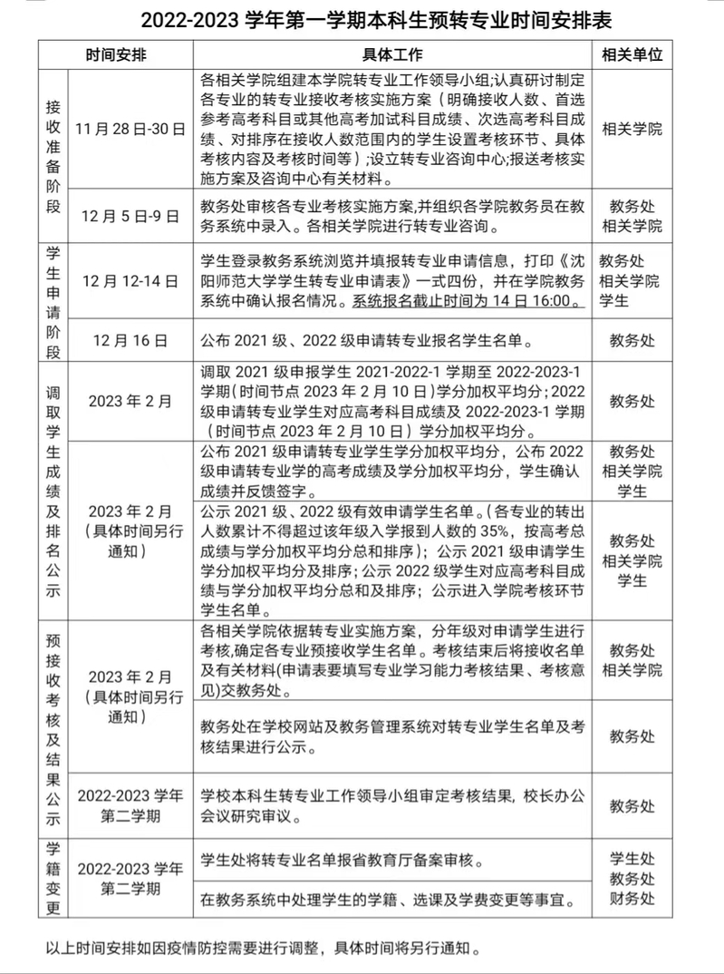 根据《普通高等学校员工管理规定》(中华人民共和国教育部令第41号)、《世界杯2026官方网站本科生转专业实施办法(2021年修订)》(沈师大校发[2021]158号)等相关文件要求,计划在本学期启动公司本科生转专业相关工作。为使本次转专业工作有序进行,现将有关事项通知如下: