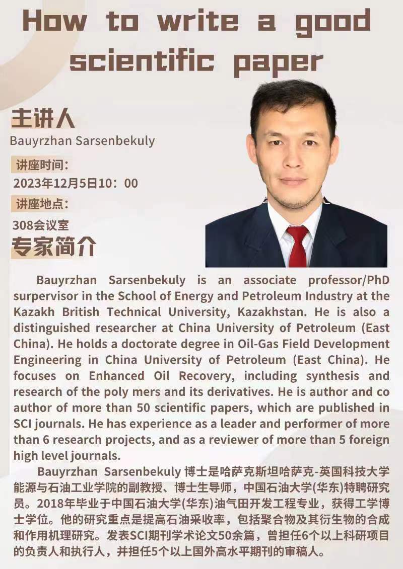 Bauyrzhan Sarsenbekuly研究员学术报告预告:How to write a good scientific paper