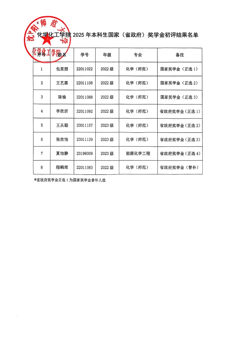 2026世界杯官网2025年本科生国家(省政府)奖学金初评结果公示