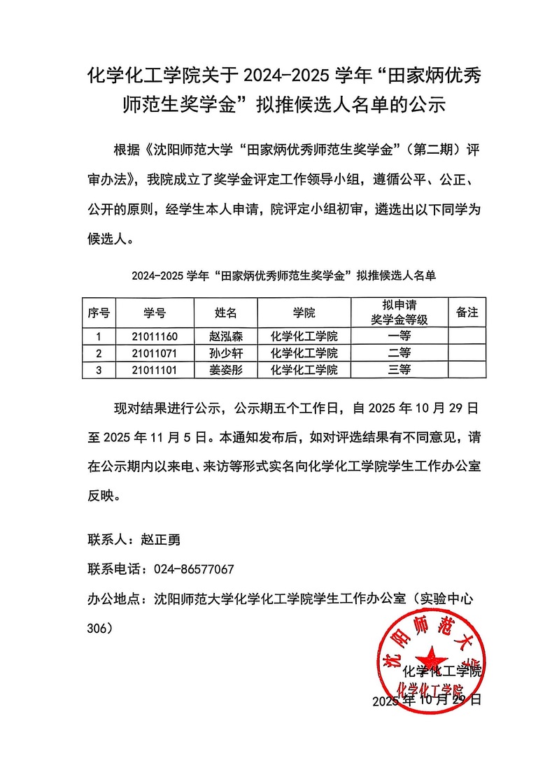 2026世界杯官网关于2024-2025学年“田家炳优秀师范生奖学金”拟推候选人名单的公示
